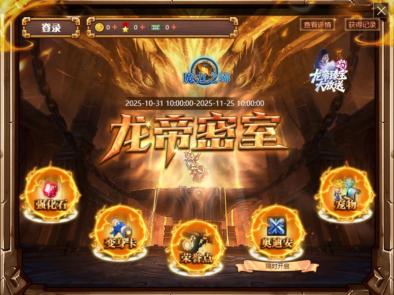 登陆游戏,点击游戏内商城入口,选择龙帝密室参与活动。