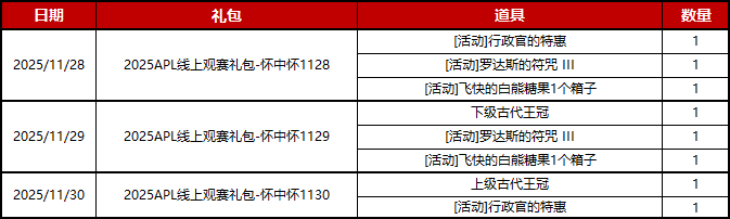 - [2025-11-26] 2025APL 총결승전 – 도우인 라이브에서 복권 가방(福袋) 선물 획득하기