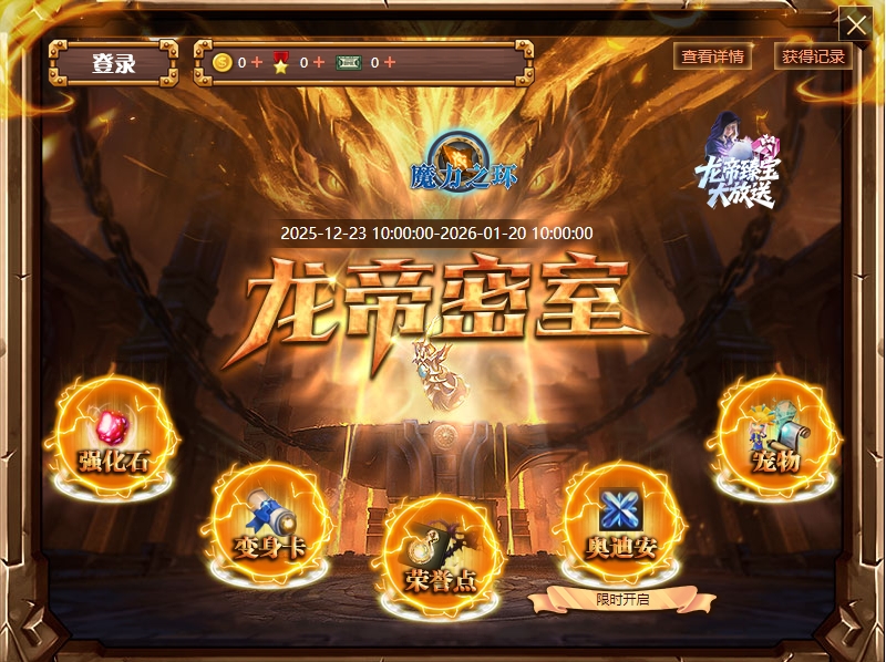 登陆游戏,点击游戏内商城入口,选择龙帝密室参与活动。